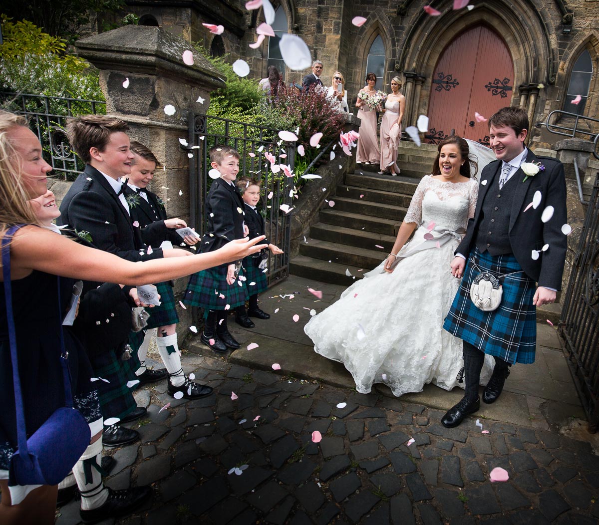 From our beautiful bride Claire’s wild and windy arrival at the church to the thorough confettiing of everyone before dinner it was a memorable celebration for all.